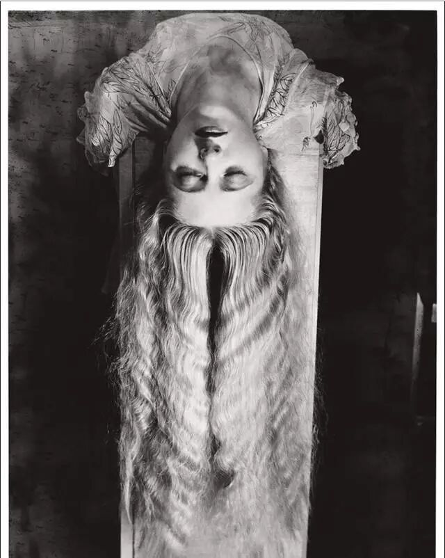 1922 年,他应邀到德· 卡萨蒂侯爵夫人家拍照,那时夫人穿了她日常的装束——腰际绕着她豢养的一条三米长的活蟒蛇,接待了他。她平时用于宴请宾客的花园里摆放着奇特的树木——满树都涂上了闪闪的金色。侯爵夫人摆好自己满意的姿势准备拍照,但意外发生了。曼· 雷的灯泡一闪随即电线短路,他只好在自然光下完成拍摄工作,由于曝光时间较长,冲洗出的照片出现了模糊,人物的目光上下有些难看的叠影,侯爵夫人成了六眼怪物。曼· 雷一下觉得问题严重了。