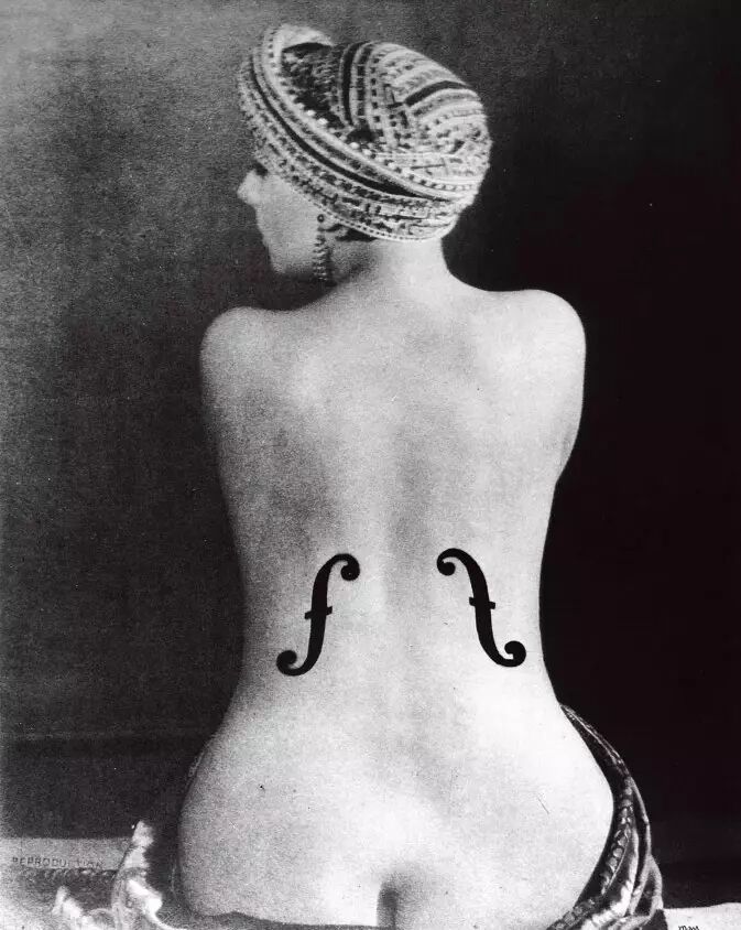 受让-奥古斯特-多米尼克•安格尔的《瓦平松的浴女》( La Grande Baigneuse)的启发,雷让“蒙帕纳斯的吉吉”戴上缠头巾作为这幅作品的模特。他在吉吉的后背上画上音孔,使女人的身体变成了一件乐器,玩弄使有生命的身体对象化的观念。曼•雷的整个艺术生涯都着迷于将物体和女性身体并置